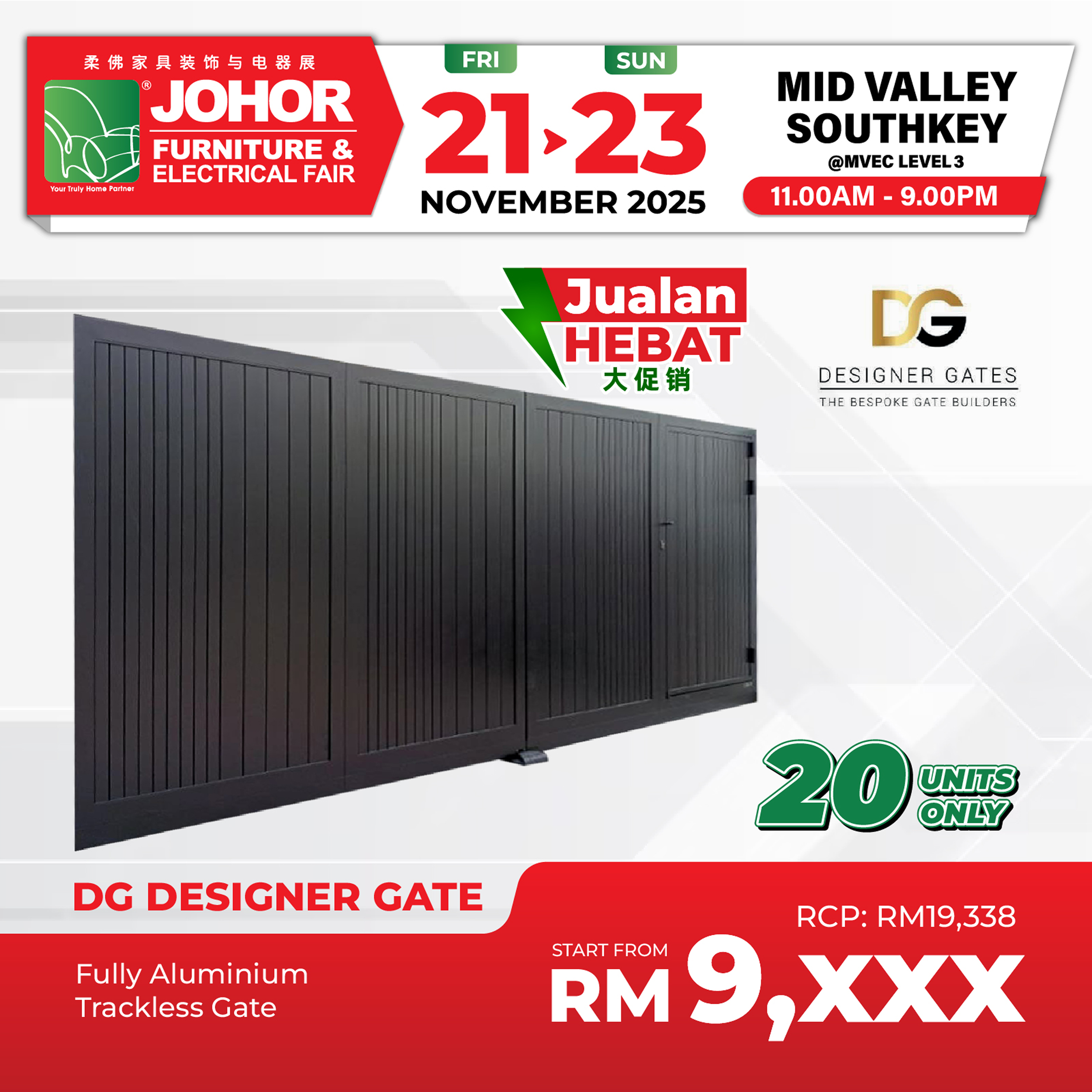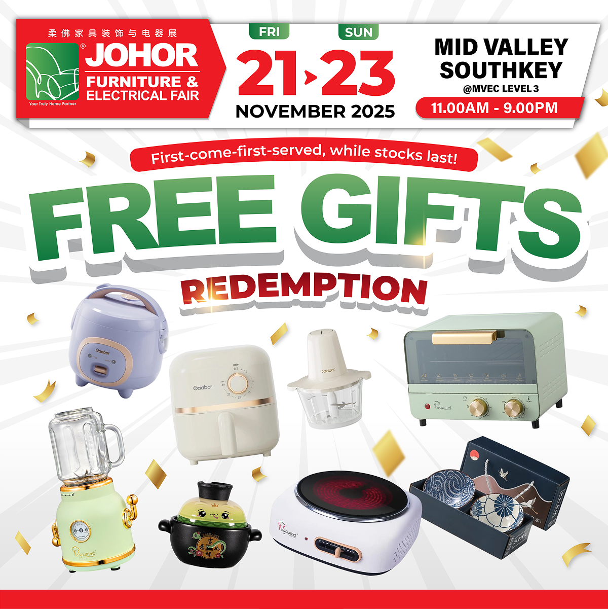 The Johor Furniture Fair will be held in Mid Valley Exhibition Centre Southkey at Level 3